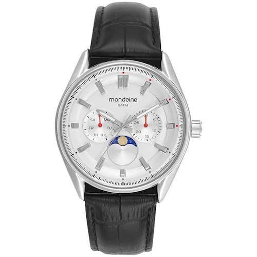 Relógio Mondaine 32948G0MVNO3 Fases da Lua Relógio Mondaine 32948G0MVNO3 Fases da Lua, uma peça que une precisão suíça e sofisticação. Seu mostrador clássico e minimalista, aliado à fases da lua, transformam este relógio em um item funcional e esteticamente refinado. Especificações Técnicas Mecanismo: ógico Máquina Miyota Gênero: Masculino Visor: Branco Vidro: Cristal Mineral Funções: Dia da semana, Data e Fases da Lua Material da Pulseira: Couro Prova d'água: 50m Diâmetro da caixa: 42 mm : 12 meses pela fabricante Mondaine Marca: Não Informado Ean: 7909669208846
