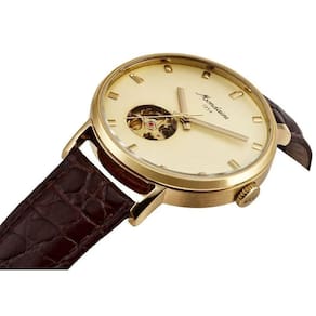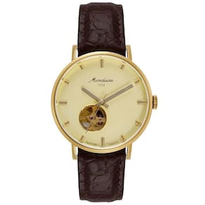 Mecanismo: Automático Miyoto Japan CWMJ Gênero: Masculino Visor: Dourado Vidro: Safira Funções: Automático e Calendário Prova d'água: 50m Diâmetro da caixa: 38 mm Largura da pulseira: 16 mm Tamanho do Vidro: 34 mm Material da Pulseira: Couro Cor da Pulseira: Marrom Caracteristica: Fundo Rosqueado com detalhe de vidro que permite a visualização do maquinário