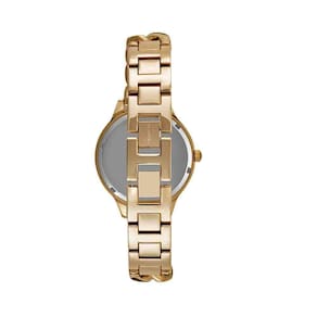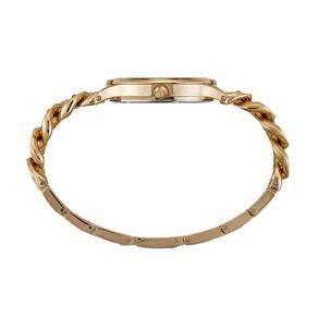 Este relógio possui um mostrador analógico na cor champage, com uma caixa dourada e pulseira também dourada, ambos feitos em aço de alta durabilidade. A largura da caixa é de 4,0 cm e o comprimento do relógio é de 21cm. A largura da pulseira é de 1,6 cm.