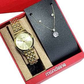 Relógio Mondaine Feminino Analógico Dourado Kit 32608LPMKDE1K1 - Cor da correia: Dourado
