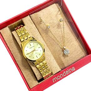 Relógio Mondaine Feminino Analógico Dourado Kit 32611LPMKDE1K1 - Cor da correia: Dourado