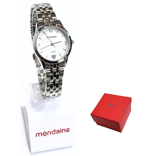 Marca: Mondaine Modelo: 32795L0MKNE2K1 Tipo de relógio: Analógico Gênero: Feminino Cor da caixa: Prateado Cor da pulseira: Prateado Estilo: Casual Alarme: Não Cronômetro: Não Calendário: Não Luz: Não Resistência à água: Sim – 5 ATM = 50 metros Tipo de fecho: Dobrável, com trava lateral Material da caixa: Aço Material da pulseira: Aço Inoxidável Características do vidro: Vidro mineral Tamanho da caixa: 28 mm Espessura da caixa: 8,5 mm Comprimento da pulseira: 22 cm Largura da pulseira: 12 mm Tampa do fundo: Rosqueado Peso: 53 Gramas Alimentação: Bateria Garantia do Fabricante: 12 meses Fabricante: Seculus da Amazônia Ind e com S/A