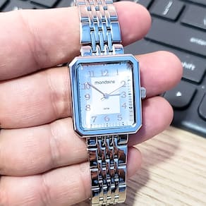 Marca: Mondaine Modelo: 32358L0MVNE2 Tipo de relógio: Analógico Gênero: Feminino Cor da caixa: Prateado Cor da pulseira: Prateado Estilo: Casual Alarme: Não Cronômetro: Não Calendário: Não Luz: Não Resistência à água: Sim – 3 ATM = 30 metros Tipo de fecho: Dobrável, com trava lateral Material da caixa: Aço Inoxidável Material da pulseira: Aço Inoxidável Características do vidro: Vidro mineral Tamanho da caixa (A x L): 30 x 27 mm Espessura da caixa: 7 mm Comprimento da pulseira: 22 cm Largura da pulseira: 9 mm Tampa do fundo: Pressão Peso: 66 Gramas Alimentação: Bateria Garantia do Fabricante: 12 meses Fabricante: Seculus da Amazônia Indústria e Com S/A