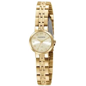 Características Formato do Relógio: Redondo Composição do Vidro: Cristal mineral Material da Caixa: Metal Cor da Caixa: Dourado Cor do mostrador: Dourado Material da Pulseira: Aço Inox Cor da Pulseira: Dourado Mecanismo: Analógico Quartz