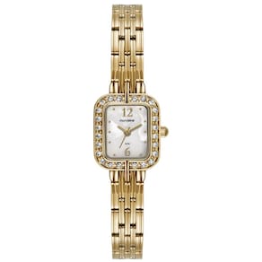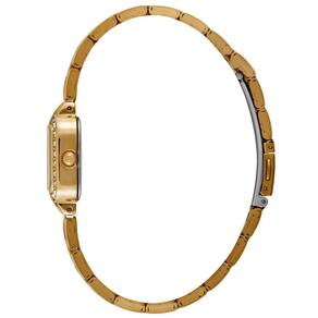 Características Formato do Relógio: Retangular Composição do Vidro: Cristral Mineral Material da Caixa: Aço Inox Cor da Caixa: Dourado Cor do mostrador: Madrepérola Material da Pulseira: Aço Inox Cor da Pulseira: Dourado Mecanismo: Analógico - Quartz