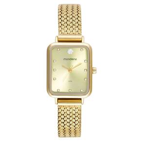 Relógio Mondaine Feminino Quadrado Dourado: Brilho e Elegância Clássica (Ref: 32744LPMVDE1) Adicione um toque de brilho e sofisticação ao seu visual com o Relógio Feminino Mondaine Quadrado Dourado (Ref: 32744LPMVDE1). Este modelo analógico combina um design clássico quadrado com detalhes modernos, sendo a peça ideal para produções elegantes e atuais. O relógio possui uma elegante folheação dourada que confere um visual luxuoso. O mostrador é valorizado por marcadores em cristais, garantindo um ponto de luz discreto e sofisticado em seu pulso. Com uma caixa de 24x36mm em metal, o acessório tem presença, mas mantém a delicadeza. A pulseira de aço possui detalhes diferenciados no design, elevando o nível de refinamento e oferecendo durabilidade. Perfeito para o dia a dia e ocasiões especiais, este Mondaine conta com resistência à água de 3 ATM e a tranquilidade de 1 ano de garantia do fabricante. Especificações Técnicas Detalhadas Modelo: Mondaine Feminino Clássico (Ref: 32744LPMVDE1) Estilo: Elegante, Clássico, Moderno Mecanismo: Analógico Cor: Dourado Formato da Caixa: Quadrado Tamanho da Caixa: 24x36 mm Diferencial: Marcadores em Cristais Material da Caixa e Pulseira: Aço (Dourado) Altura da Caixa (Espessura): 9 mm Largura da Pulseira: 12 mm Comprimento do Relógio: 22 cm Resistência à Água (ATM): 3 ATM (Resistente a respingos leves) Garantia: 1 Ano (do Fabricante) Garanta já o seu Mondaine Quadrado Dourado e tenha um acessório que une brilho e elegância atemporal!
