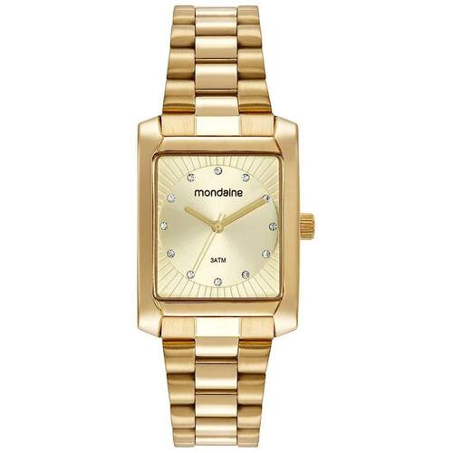 Relogio Mondaine Feminino Ref: 32480lpmvde1 Retangular Dourado DESCRIÇÃO DO PRODUTO: Caixa de Metal Pulseira de Aço Vidro de Cristal Mineral Fundo Resistente à Água 3 Atm Diâmetro / Largura da Caixa: 30.00 MM x 32.00 MM Função: Analógico Alimentação do Maquinário: Bateria Mostrador Dourado com strass de 1 Ano Marca: Não Informado