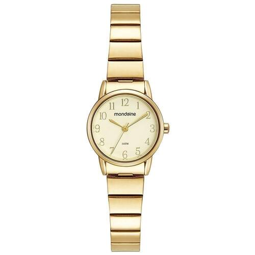 Relogio Mondaine Feminino Ref: 32490lpmvde1 Casual Dourado DESCRIÇÃO DO PRODUTO: Caixa de Metal Pulseira de Aço Vidro de Cristal Mineral Fundo Rosqueado Resistente à Água 5 Atm Diâmetro / Largura da Caixa: 25.00 MM Função: Analógico Alimentação do Maquinário: Bateria Mostrador Dourado com todos os números Garantia de 1 Ano