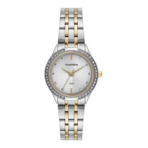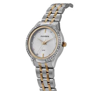 Relogio Mondaine Feminino Ref: 32858lpmvbe2 Clássico Bicolor DESCRIÇÃO DO PRODUTO: Caixa de Metal Pulseira de Aço Vidro de Cristal Mineral Fundo Rosqueado Resistente à Água 5 Atm Diâmetro / Largura da Caixa: 28.00 MM Função: Analógico Alimentação do Maquinário: Bateria Mostrador Prateado com Pedras Aro externo de pedras Prateado com Dourado de 1 Ano