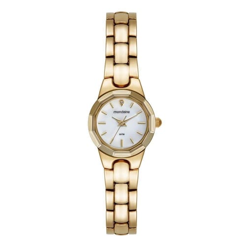 Relogio Mondaine Feminino Ref: 32917lpmvdm1 Bracelete Dourado DESCRIÇÃO DO PRODUTO: Caixa de Metal Pulseira de Metal Bracelete Vidro de Cristal Mineral Facetado Fundo Rosqueado Resistente à Água 5 Atm Diâmetro / Largura da Caixa: 23.00 MM Função: Analógico, Bracelete Alimentação do Maquinário: Bateria Mostrador Estilo Madreperola Branco com pedra de 1 Ano