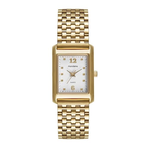 Relogio Mondaine Feminino Ref: 32921lpmvde1 Retangular Dourado DESCRIÇÃO DO PRODUTO: Caixa de Metal Pulseira de Aço Vidro de Cristal Mineral Fundo Resistente à Água 3 Atm Diâmetro / Largura da Caixa: 25.00 MM x 28.00 MM Função: Analógico Alimentação do Maquinário: Bateria Mostrador Branco com números de 1 Ano Marca: Não Informado Ean: 7909669204107