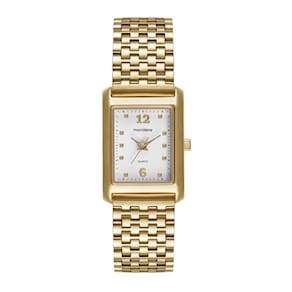 Relogio Mondaine Feminino Ref: 32921lpmvde1 Retangular Dourado DESCRIÇÃO DO PRODUTO: Caixa de Metal Pulseira de Aço Vidro de Cristal Mineral Fundo Resistente à Água 3 Atm Diâmetro / Largura da Caixa: 25.00 MM x 28.00 MM Função: Analógico Alimentação do Maquinário: Bateria Mostrador Branco com números de 1 Ano Marca: Não Informado