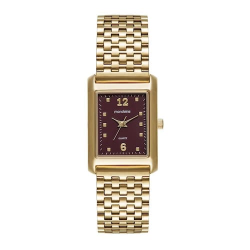 Relogio Mondaine Feminino Ref: 32921lpmvde2 Retangular Dourado DESCRIÇÃO DO PRODUTO: Caixa de Metal Pulseira de Aço Vidro de Cristal Mineral Fundo Resistente à Água 3 Atm Diâmetro / Largura da Caixa: 25.00 MM x 28.00 MM Função: Analógico Alimentação do Maquinário: Bateria Mostrador Bordô com números de 1 Ano