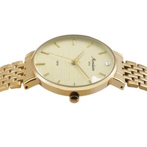 Relogio Mondaine Feminino Ref: 32923lpmvde1 Fashion Dourado 1954 DESCRIÇÃO DO PRODUTO: Caixa de Metal Pulseira de Aço Vidro de Cristal Mineral Fundo Rosqueado Resistente à Água 5 Atm Diâmetro / Largura da Caixa: 36.00 Altura da Caixa: 10.00 MM Função: Analógico Alimentação do Maquinário: Bateria Mostrador Dourado Com Pedra e inscrição Mondaine 1954 Coleção Especial Mondaine 70 Anos de 1 Ano
