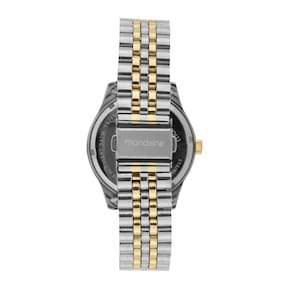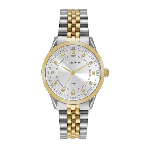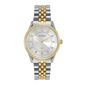 Relogio Mondaine Feminino Ref: 99763lpmvbe2 Casual Bicolor DESCRIÇÃO DO PRODUTO: Caixa de Metal Pulseira de Aço Vidro de Cristal Mineral Fundo Rosqueado Resistente à Água 5 Atm Diâmetro / Largura da Caixa: 40.00 MM Função: Analógico Alimentação do Maquinário: Bateria Mostrador Prateado com Pedras Prateado com Dourado de 1 Ano Marca: Não Informado Ean: 7909669188018