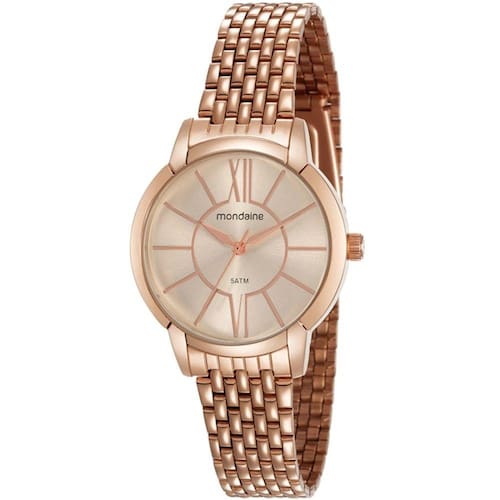 Informações Básicas - Marca: Mondaine - Referência: 53615lpmvre3 - Genêro: Feminino - Garantia: 1 Ano em Toda Rede de Assistência Técnica Mondaine no Brasil Características - Composição do Vidro: Cristal Mineral - Material da Caixa: Metal - Cor da Caixa: rose - Material da Pulseira: Aço - Cor da Pulseira: rose -Diâmetro da Caixa: 3.5 cnt -: Analogico Resistência à Água - WR: 50 metros - Pode Lavar as Mãos: Sim - Pode Usar em Água Corrente: Sim - Pode Usar na Piscina: Não - Pode Usar em Mergulho Profundo: Não ACOMPANHA: - Nota Fiscal - Estojo - Certificado de garantia. 1 Ano