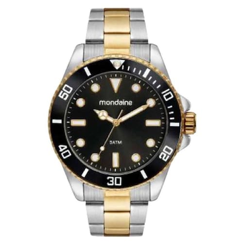 características: composição do vidro: cristal mineral material da caixa: aço inox material da pulseira: aço inox cor da caixa: inox com detalhes na coroa dourado cor da pulseira: aço com detalhes dourado cor do mostrador: preto com ponteiros e indicadores dourados refletivos modelo: analógico mecanismo: quartz alimentação: bateria resistência à água: 5 atm fundo: pressão diâmetro da caixa: 42 mm diâmetro do visor: 31 mm lagura da pulseira: 18 mm comprimento da pulseira: 18 cm altura da caixa: 10 mm garantia: 1 ano acompanha e certificado de garantia