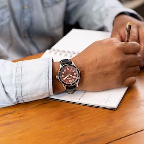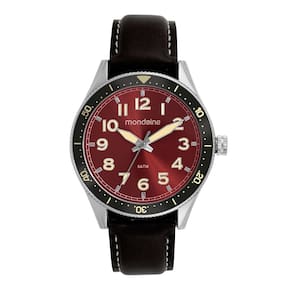 Características Formato do Relógio: Redondo Composição do Vidro: Cristal Mineral Material da Caixa: Aço Inox Cor da Caixa: Prata Cor do mostrador: Vermelho Material da Pulseira: Couro Cor da Pulseira: Preto Mecanismo: Analógico - Quartz