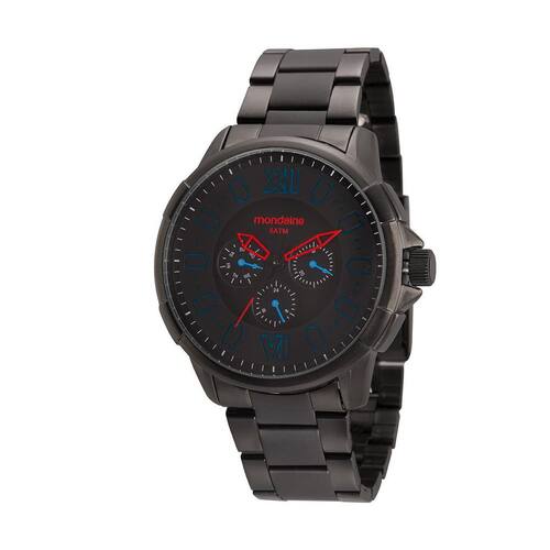 Relógio Mondaine Masculino Multifuncao 32180Gpmvpe2 O funcionamento é Multifuncao, Pulseira de Aço na cor PRETO, fecho de Trava de Segurança, caixa de Metal e resistencia de 5 ATM.