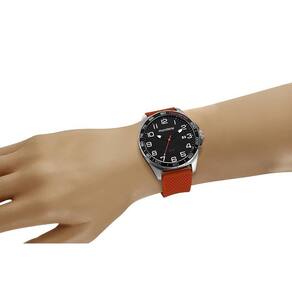 Caixa de Metal Pulseira de Silicone Laranja Vidro de Cristal Mineral Fundo Rosqueado Resistente à Água 5 Atm Diâmetro / Largura da Caixa: 49.00 MM Função: Analógico, Calendário Alimentação do Maquinário: Bateria Mostrador preto com todos os números