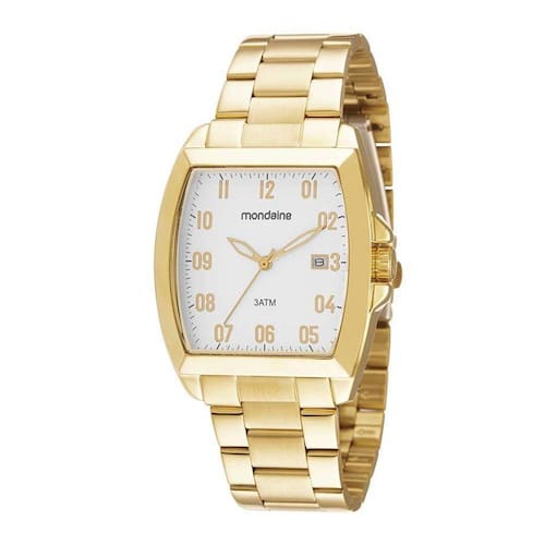 Relogio Mondaine Masculino Ref: 83497gpmvde1 Retangular Dourado DESCRIÇÃO DO PRODUTO: Caixa de Metal Pulseira de Aço Vidro de Cristal Mineral Fundo de Pressão Resistente à Água 3 Atm Diâmetro / Largura da Caixa: 39.00 MM x 39.00 MM Função: Analógico, Calendário Mostrador Prateado Com Todos os Números Alimentação do Maquinário: Bateria Garantia de 1 Ano