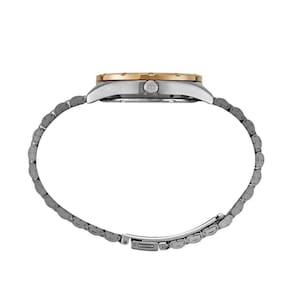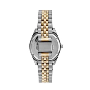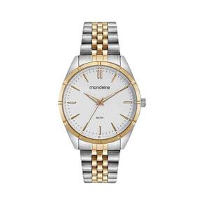 Com um mostrador analógico clássico, este relógio possui uma caixa prata e dourada, que confere um toque de sofisticação ao seu visual. A pulseira em aço também possui a mesma combinação de cores, garantindo uma harmonia perfeita.