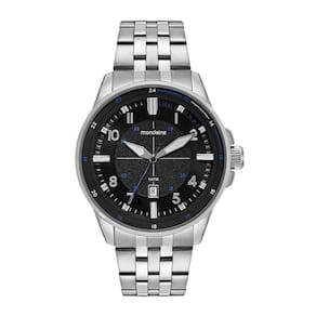 Especificações técnicas: - Gênero: Masculino - Marca: Mondaine - Cor: Prata/preto - Material da caixa: Aço - Material da pulseira: Aço - Resistência à água: 50 metros 5 atm - Tamanho da caixa: 45 mm