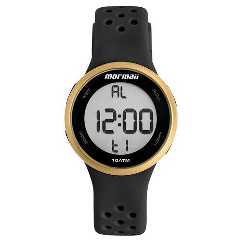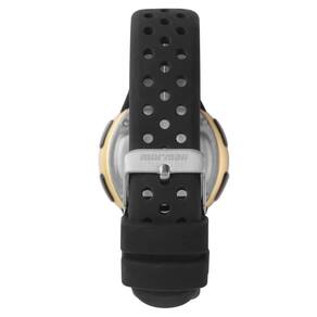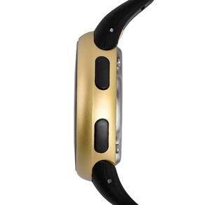 Características Formato do Relógio: Redondo Composição do Vidro: Acrílico Material da Caixa: Resina Cor da Caixa: Dourado Cor do mostrador: Digital, Preto Material da Pulseira: Borracha Cor da Pulseira: Preto Mecanismo: Digital