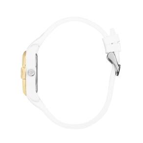 Pulseira: Silicone branca com fecho de fivela
