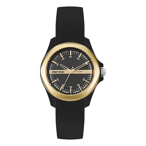 O Mormaii MO2036JK/8P da linha Luau é a escolha ideal para mulheres que buscam estilo com atitude. Com design marcante e visual sofisticado, o relógio combina uma moldura dourada com mostrador preto texturizado e pulseira de silicone preta, criando um contraste elegante que se adapta tanto ao dia a dia quanto a momentos especiais.