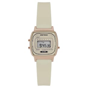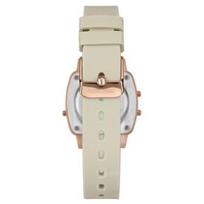 Relógio Acqua NXT conta com um design inovador e cheio de estilo. Com caixa de 30mm na cor rosé, feita de polímero, e pulseira de silicone na cor bege, o relógio conta com várias funcionalidades, como cronômetro, alarme, luz noturna e display digital de fácil leitura. Além disso, seu mostrador na cor bege é de LCD positivo e conta com a resistência à água de 50 metros.