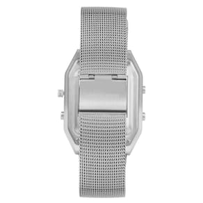 Relógio Vintage apresenta um novo modelo, com pulseira de aço inoxidável em mesh banhado em prata. A linha traz um relógio único, que apresenta mostrador na cor prata com duas opções de visualização: digital e analógico. Além disso, conta com display com indicação de dia, semana e mês, incluindo alarme e cronômetro. Apresenta resistência à água de 50 metros.