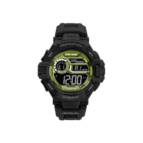 Relógio mormaii masculino action mo1134ab/8v à prova dágua 10atm. aro metalizado verde. modelo digital com pulseira e caixa de polímero preto. caixa de 54mm.ESPECIFICAÇÕES DO PRODUTOSUB CATEGORIARelógio DigitalTIPORelógio PolímeroDIVISÃOAdultoPRODUTOEsportivaGÊNEROMasculinoCOLEÇÃO2020CARACTERISTICAMaterial da caixa: polímero, tamanho da caixa: 54, cor da caixa: preto(a), resistência à água: 10 atm, material da pulseira: polímero, cor da pulseira: preto(a)