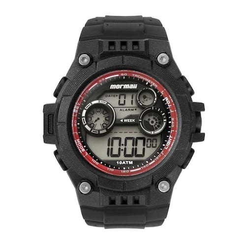 Trazendo uma combinação incrível entre o aro interno vermelho e banho preto, esse relógio da linha Wave combina com você. Além disso, esse modelo masculino da Mormaii conta com mostrador LCD positivo, pulseira preta de polímero, caixa redonda de 54mm e resistência de 10 ATM.