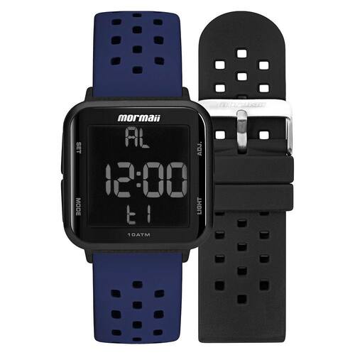 Relógio Mormaii unissex com caixa de aço e pulseira de silicone.