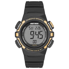 Relógio Mormaii Wave apresenta seu mais novo lançamento, com caixa de polímero e pulseira de poliuretano. Com display de LCD positivo, seu mostrador redondo com detalhes em amarelo conta com indicador de dia, semana e mês, alarme, cronômetro, aviso sonoro de hora em hora e luz noturna para auxiliar em ambientes escuros. Além disso, a linha apresenta resistência à água de 100 metros.