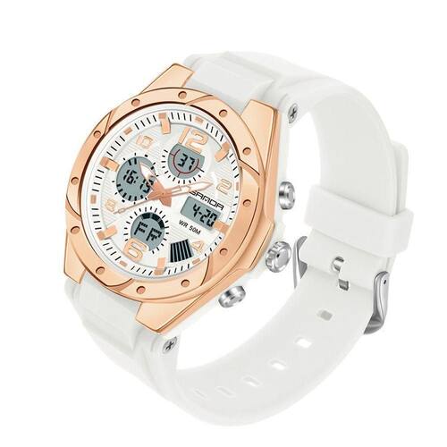 Relógio Mostrador Duplo De Quartzo, Alarme, Cronógrafo E Cronógrafo Branco