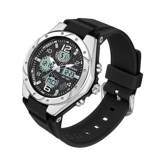 Relógio Mostrador Duplo De Quartzo, Alarme, Cronógrafo E Cronógrafo Preto Prateado
