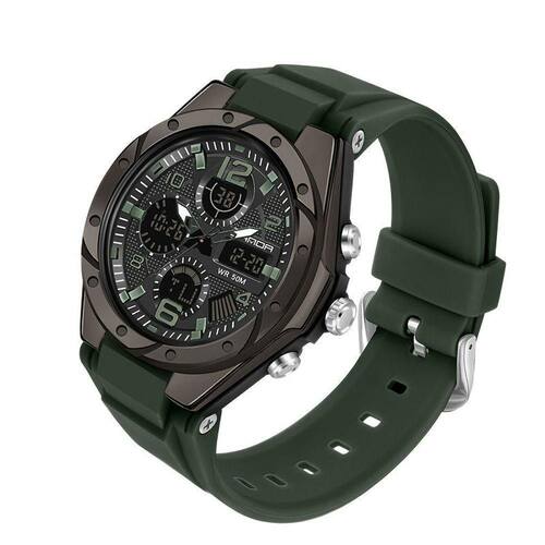 Relógio Mostrador Duplo De Quartzo, Alarme, Cronógrafo E Cronógrafo Preto Verde
