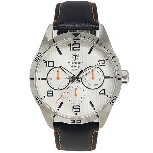 Marca: Tuguir Categoria: Analógico Analógico: Sim (1 Horário) Ponteiros Fluorescentes: Sim Digital: Não Calendário: Sim Despertador: Não Mostra o Dia da Semana: Sim Mostra o Dia do Mês: Não Cronômetro: Sim Contador Regressivo: Não Luz: Não Resistente à Água: 10 ATM - Respingos: Sim - Chuva: Sim - Lavar Carro: Sim - Lavar Louça: Sim - Natação: Sim - Mergulho: Sim Característica do Vidro: Cristal Mineral Tipo de Fecho: Fivela Cor da Caixa: Prata Material da Caixa: Aço Formato da Caixa: Redondo Diâmetro da Caixa: 44,00 (mm) Espessura da Caixa: 12,50 (mm) Cor da Pulseira: Preto Material da Pulseira: Couro Largura da Pulseira: 21,00 (mm) Comprimento Máximo da Pulseira: 250,00 (mm) Alimentação: Bateria Interna Peso Líquido: 7,000 Kg Modelo: TGI37061 Cor Predominante: Preto Cor Diferencial: Branco Garantia: 12 Meses