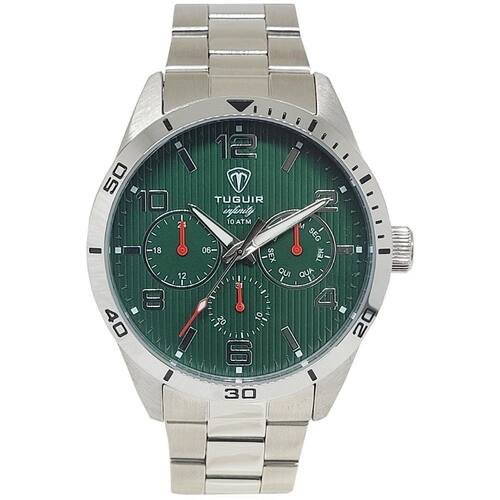 Relógio MultiFunção Masculino Tuguir ógico Infinity TGI37058 Prata e Verde Relógio MultiFunção Masculino Tuguir ógico Infinity TGI37058 Prata e Verde Marca: Tuguir Categoria: ógico ógico: Sim 1 Horário Ponteiros Fluorescentes: Sim Digital: Não Calendário: Sim Despertador: Não Mostra o Dia da Semana: Não Mostra o Dia do Mês: Sim Cronômetro: Sim Contador Regressivo: Não Luz: Não Resistente à Água: 10 ATM Pode ser para Mergulhar - Respingos: Sim - Chuva: Sim - Lavar Carro: Sim - Lavar Louça: Sim - Natação: Sim - Mergulho: Sim Característica do Vidro: Cristal Mineral Tipo de Fecho: Dobrável com Botão Cor da Caixa: Prata Material da Caixa: Aço Formato da Caixa: Redondo Diâmetro da Caixa: 44,00 mm Espessura da Caixa: 12,50 mm Cor da Pulseira: Prata Material da Pulseira: Aço Largura da Pulseira: 20,00 mm Comprimento Máximo da Pulseira: 220,00 mm Alimentação: Bateria Interna Peso Líquido: 0,150 Kg Modelo: TGI37058 Cor Predominante: Prata Cor Diferencial: Verde : 12 Meses Conteúdo da Embalagem: 01 Relógio 01 Embalagem 01 Termo de Marca: Não Informado