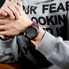 Seu formato inovador e materiais de alta qualidade garantem durabilidade e resistência durante atividades diárias e esportivas. Com características únicas como resistência à água de até 5 bar e função de alarme, este relógio oferece não apenas um visual elegante, mas também uma funcionalidade excepcional. O cronógrafo integrado e a tela de LED são perfeitos para aqueles que valorizam a precisão e o desempenho em um relógio esportivo.