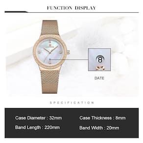 FUNÇÕES ESPECIFICAÇÕES:Exibição AnalógicaHoras, Minutos e SegundosCalendárioResistência à água: 3ATM - Ver TabelaMaterial da caixa: Metal/AçoMaterial da pulseira: AçoDiâmetro da caixa mostrador : 3.2 cm 32 mm Espessura da caixa mostrador : 0.8 cm 8mm Comprimento da pulseira: 22.0 cm 220mm Largura da pulseira: 2.0 cm 20mm Peso: 54gObservações: Antes de utilizar em atividades aquáticas consulte as especificações da tabela de resistência à água. Não pressionar os botões quando em contato com água.Não utilizar em contato com água quente ou morna. Evite que o relógio tenha contato com produtos químicos.Conteúdo da Embalagem:1 Relógio2 Manual de Instruções3 Caixa Lisa