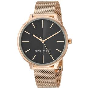 Relógio social feminino de quartzo japonês Nine West com pulseira de aço inoxidável, ouro rosa, 20 (modelo: NW/1980GYRG) - Lente de cristal mineral - O mostrador dividido cinza é meio fosco e meio raio de sol - Pulseira de malha de aço inoxidável em tom de ouro rosa com fecho de joalheria e elo extensor - Não é resistente à água