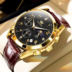 OLEVS Relógios masculinos de couro marrom com data, relógios casuais para homens, relógios de rosto grande para homens, cronógrafo, relógio esportivo, à prova d'água, para negócios, analógico, - Horário preciso e preciso: fornecemos relógios de couro marrom para homens com movimento de quartzo de qualidade premium com mostrador analógico e de data incrivelmente durável e pode durar uma vida inteira quando devidamente mantido com este relógio masculino feito de forma clara. Relógio cronógrafo multifuncional com quatro submostradores para segundos, minutos, mostrador da fase da lua, data. Design de diamante de numeral arábico, relógio masculino fácil de ler clássico nunca sai de moda. - Relógio cronógrafo confortável e durável: quando você precisa de um relógio, prove que valoriza o seu tempo. O relógio OLEVS não apenas faz um sentido confortável para o seu pulso, mas também é fácil de combinar com suas roupas. Nossa paixão nos leva à perfeição, dedicando horas e horas de trabalho para obter um produto final verdadeiramente incrível e exclusivo. - Presente perfeito para o Dia dos Pais. Os relógios de couro masculinos grandes pretos são o presente perfeito para festivais, família e reuniões. Os relógios de couro são o presente luxuoso da moda para formatura, aniversário, casamento e dia dos namorados. São os presentes ideais para pai, namorado, colegas de classe ou colegas. Certamente conquistará o coração de seus amigos e familiares. - À prova d'água e luminosa de 30 m: relógios casuais masculinos à prova d'água até 30 m, adequados para uso diário. Não é adequado para banho, natação e mergulho. Este relógio brilhará no escuro após absorver energia luminosa suficiente. Não luminoso, você deve iluminá-lo com a luz brilhante para ativar a função luminosa. - 100% de garantia e serviço: use nosso relógio esportivo cronógrafo sem riscos. Devolução de 30 dias e garantia de 24 meses para qualquer problema relacionado à qualidade. A satisfação do cliente é nossa primeira prioridade e não comprometemos a qualidade do material, se você tiver alguma dúvida, sinta-se à vontade para entrar em contato conosco. Ajudaremos você a resolver o problema.