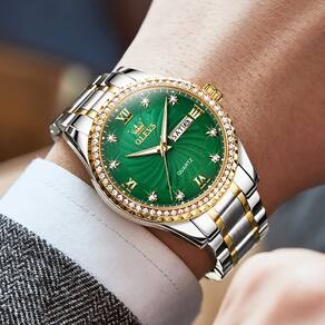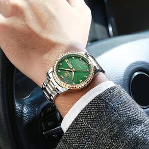 Relógio masculino casual de aço inoxidável, mostrador grande de quartzo analógico fácil de ler com dia e data, relógio masculino clássico à prova d'água com diamante e algarismos arábicos romanos, - Design luxuoso e elegante: movimento de quartzo de alta qualidade, ponteiros luminosos dourados e um mostrador texturizado verde conferem um apelo clássico a este relógio masculino. É ideal para usar — desde conjuntos casuais e descolados até peças separadas prontas para o escritório. - [Mostrador diamante] ? Este relógio tem 68 diamantes no mostrador, brilho suficiente para manter as pessoas interessadas sem ser ostentoso. Uma janela de dia e data nas 3 horas significa que você nunca esquecerá aniversários e aniversários. - Pulseira de aço inoxidável premium: a caixa e a pulseira de aço inoxidável altamente polido incorporam uma superfície simples que permite que o relógio brilhe e brilhe de todos os ângulos, enquanto também oferece conforto ao pulso. Fornece ferramentas de ajuste gratuitas para ajustar a pulseira em casa. - Presentes perfeitos: Todo cavalheiro perspicaz precisa de um relógio que seja igualmente elegante e sofisticado. É o presente preferido para pai, marido, filho, irmão, namorado, amigo e muito mais. Perfeito para o Dia dos Namorados, aniversários, Dia dos Pais, Natal e outros eventos. - O que você recebe: relógio simples OLEVS masculino, garantia de devolução do dinheiro em 30 dias, nossa garantia de 12 meses sem preocupações e atendimento ao cliente amigável. Resistente à água até 30 m, adequado para uso diário. Não é adequado para banho, natação, mergulho e outros trabalhos relacionados à água.