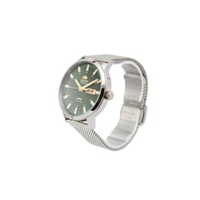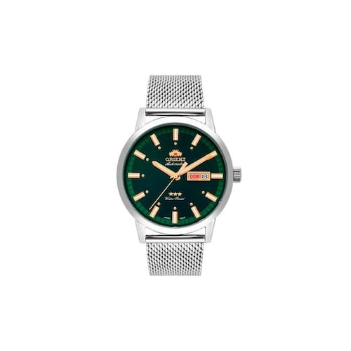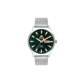 Possui mecanismo automatico, sua pulseira na cor prata é fabricada em aço, vidro fabricado em cristal mineral e mostrador cor preto e detalhes prata. A caixa na cor prata é também fabricada em aço no formato redondo. O relógio tem nível de resistência à água especificado 50M / 5ATM.
