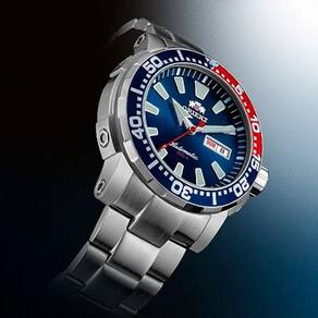 Funções: aro rotativo unidirecional, calendário duplo, pulseira de silicone na cor azul e ferramentas para troca acompanham este modelo
