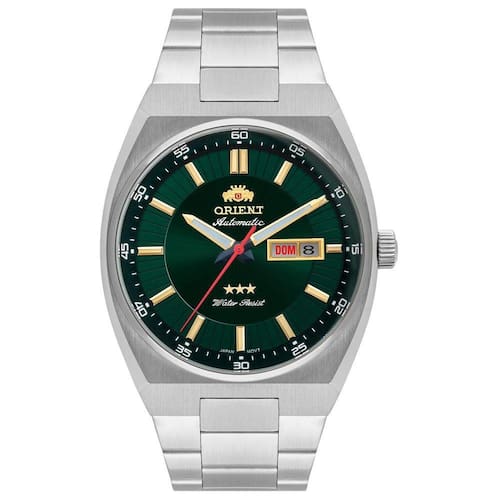 Descrição do Relógio Marca: Orient Modelo: 469SS087F E1SX Gênero: Masculino Mostrador: Verde Bisel :Dourado Caixa: Prata Mecanismo : Analógico Calendário : Sim Dia e Semana Coroa: Simples Resistencia a água: sim Vidro: Cristal Mineral Material da Caixa : Aço Inoxidável Material da Pulseira : Aço Inoxidável Diâmetro da Caixa : 47 mm Diâmetro do Visor: 38 mm Espessura da Caixa : 17 mm Largura da Pulseira: 26 mm Trava : Trava Comprimento da Pulseira : 20 cm Peso: 150 gramas Fabricante - Orient Relógios da Amazônia LTDA Garantia - Garantia de 1 Ano direto com Fabricante Conteúdo da embalagem: 01 Relógio de pulso 01 Estojo Autêntico Manual em português Cerificado de Garantia do Fabricante Nota Fiscal Eletrônica