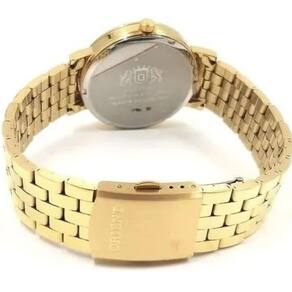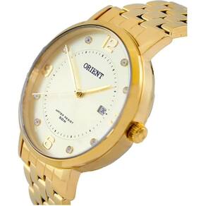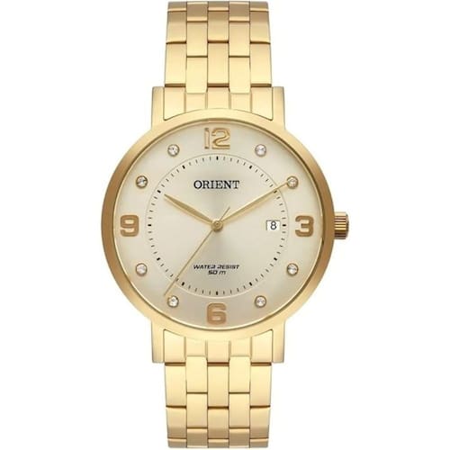 Informações Do Relógio Marca Orient Modelo FGSS1165C2KX Número da peça Feminino Forma Redondo Cristal Vidro, Vidro mineral Tipo de tela ou mostrador Análogico Fecho Fecho dobrável com trava dupla Material da caixa Aço inoxidável Diâmetro da caixa 38 milímetros Material da faixa, pulseira ou tira Aço inoxidável Largura da faixa, pulseira ou tira 18 milímetros Cor da faixa, pulseira ou tira Dourado Cor do mostrador dourado Características especiais Analógico Peso 89 g Movimento do relógio Quartzo Resistência à água 50 Metros